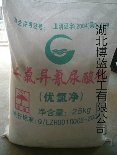 二氯异氰尿酸是一种高效、广谱、新型内吸性杀菌剂,有极强的杀生作用,在20ppm时,杀菌率达到99%。可杀灭各种细菌、藻类、真菌和病菌。二氯异氰尿酸钠化学性质稳定,干燥条件下保存半年内有效氯下降不超过1%便于贮存运输;使用安全、简便、用量少、药效持续时间长。可强力杀灭细菌芽孢、细菌繁殖体、真菌等各种致病性微生物,对肝炎病毒有特效杀灭作用,快速杀灭并强力抑制循环水、冷却塔、水池等系统的蓝绿藻、红藻、海藻等藻类植物。对循环水系统的硫酸还原菌、铁细菌、真菌等有彻底的杀灭作用。